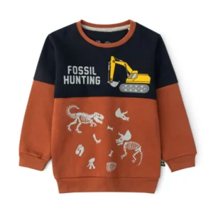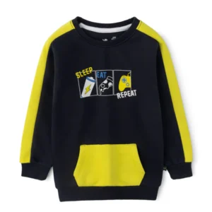 £15.00A cozy fleece-crafted crew-neck sweatshirt with color-block pattern, ribbed edges, styled with a playful graphic, perfect for adventurous everyday layering.