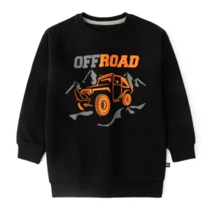 A fleece sweatshirt featuring a bold graphic, finished with snug ribbed cuffs and hem for a secure fit, blending warmth, comfort, and rugged adventure-ready style.