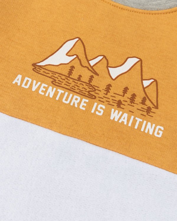 This striped tee with a hem patch, teamed with easy-fit shorts designed with a functional drawstring, elastic waist, and side pockets.
