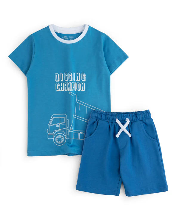 This duo-pack includes a graphic t-shirt made from knitted jersey fabric and paired with elasticated waistband easy-on short.