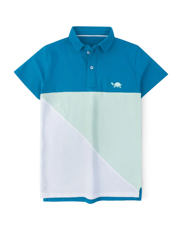 This polo features a stylish diagonal color-block design, a classic collar with a button placket, and signature logo on chest for polished casual look.