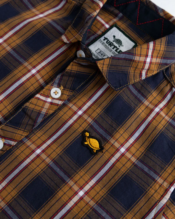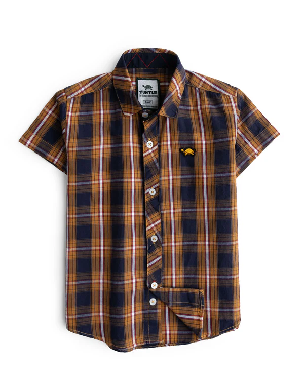 This cotton made dress shirt features plaid check pattern, full button placket on front, and signature logo on chest is perfect for summer fun.