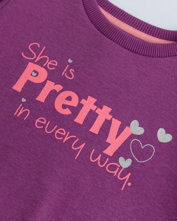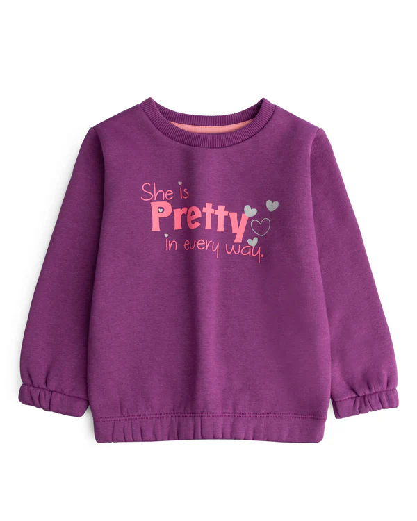 This sweatshirt crafted from soft knitted fabric is designed in ribbed pattern with charming graphical front for pretty look.