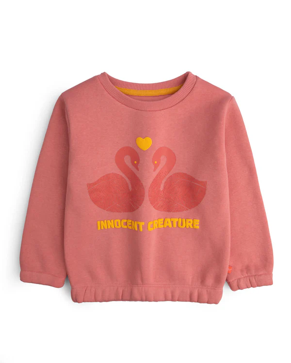 This fleece-made sweatshirt is stylized in printed pattern, rib neck, and elasticated hem making it stylish for girl wear.