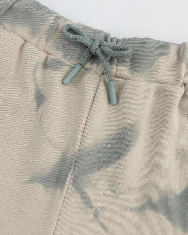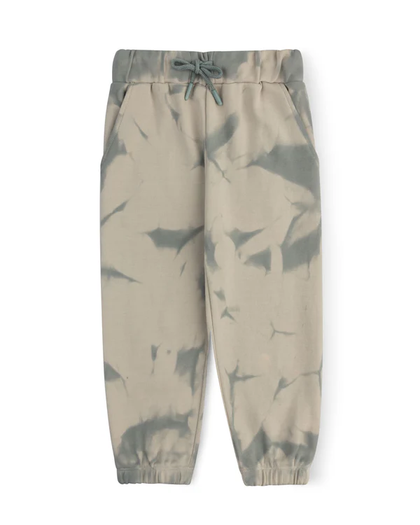 Effortlessly stylish tie-dye terry fabric joggers in soft neutral tones, featuring an adjustable waistband, inset pockets, and elastic cuffs for a sleek look.
