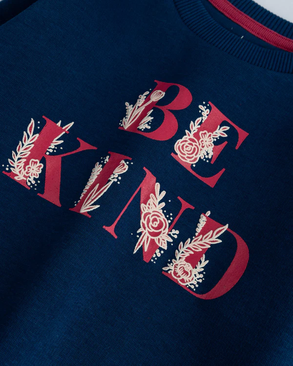 This sweatshirt crafted from soft knitted fabric is designed in ribbed pattern with charming graphical front for pretty look.