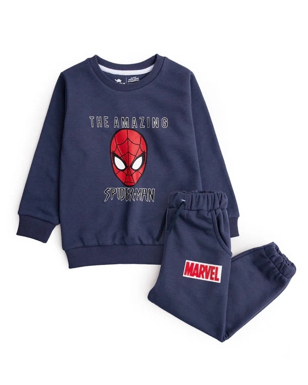 A fleece-crafted duo-pack with a graphic sweatshirt and joggers with sporty side panels, designed for comfy all-day play.