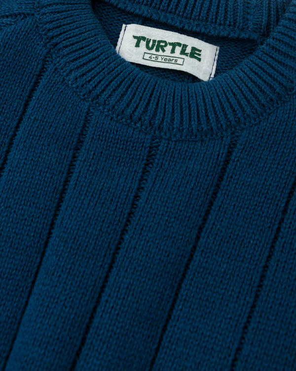 A ribbed knitted sweater featuring structured shoulder lines, soft stretch comfort, and a signature leather patch for a refined modern edge.