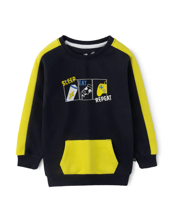 This fleece-crafted sweatshirt features rib neck, sleeves and hem with cool graphics making it comfortable choice for any time wear.