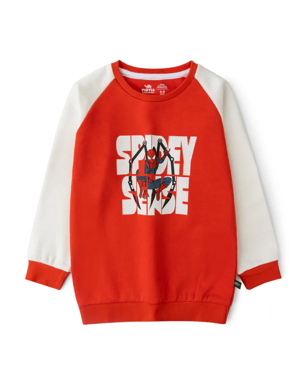 A soft fleece raglan sweatshirt in vibrant red hue with contrast sleeves, styled with a sporty front graphic, ribbed trims, and a relaxed modern fit for everyday wear.