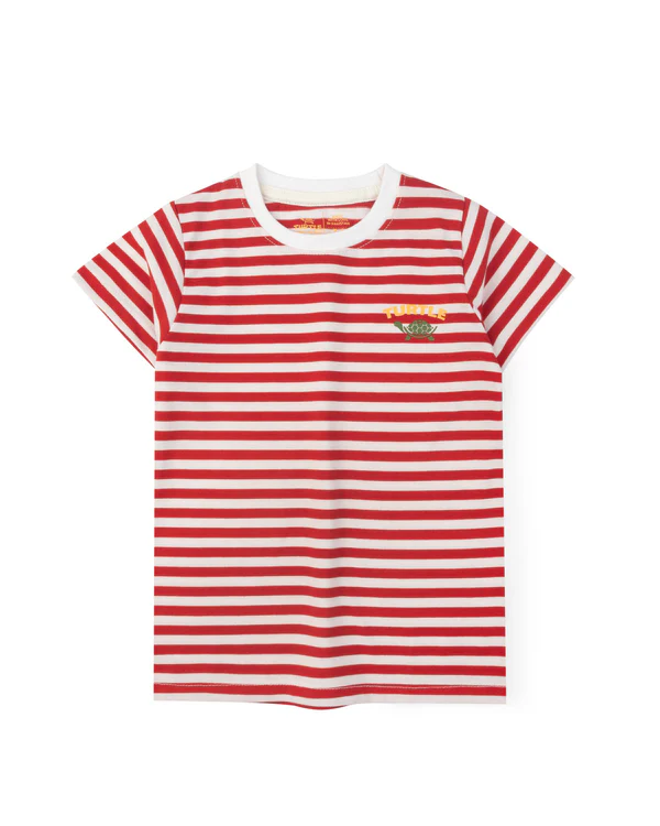 Made for daily wear, this striped tee pairs a soft stretch neckline with jersey fabric and a charming signature logo on chest.