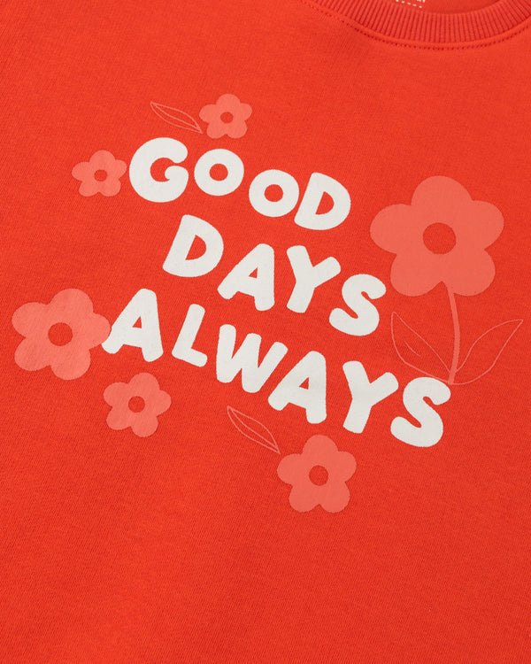 This sweatshirt crafted from soft knitted fabric is designed in ribbed pattern with charming graphical front for pretty look.