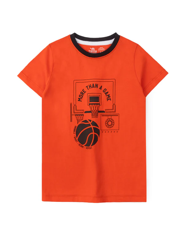 A jersey-crafted t-shirt featuring bold gamer graphics and a contrast ribbed neck for a sharp, sporty edge.